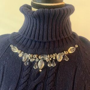 Stunning bluegirl navy sweater dress. A unique style, beautiful colour and in excellent condition! Comes with a built-in necklace for a chic look that can go from day to night!