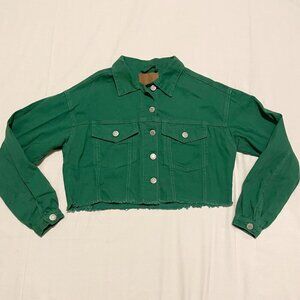 Bluenotes Crop Denim Jean Jacket Green Womens Size XS