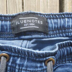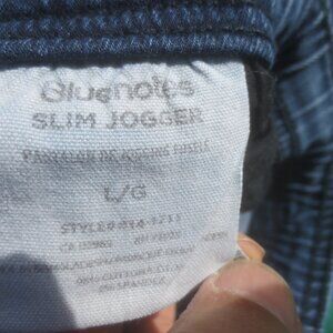Bluenotes Denim Jean Slim Jogger Rugby Style Denim Jean Pants - Size Large. In very good to near excellent condition with no damages. Washed, cleaned, stain and odor free, air and sun dried. This is a men's large but completely unisex fashion friendly. It is a large but a generous large.