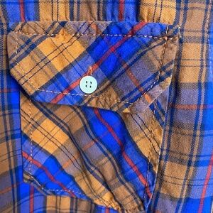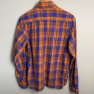 Bluenotes Men's Orange/Blue Plaid Long Sleeve Button Up Shirt Size Medium
