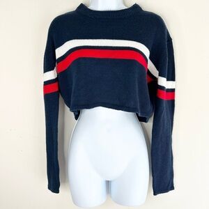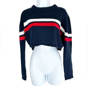 Bluenotes Knit Crop Stripe Sweater Navy Blue