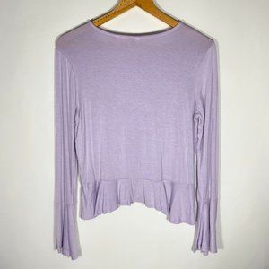 Bluenotes Womens Top U Neck Ruffle Peplum Longsleeve Lavender Sz M