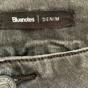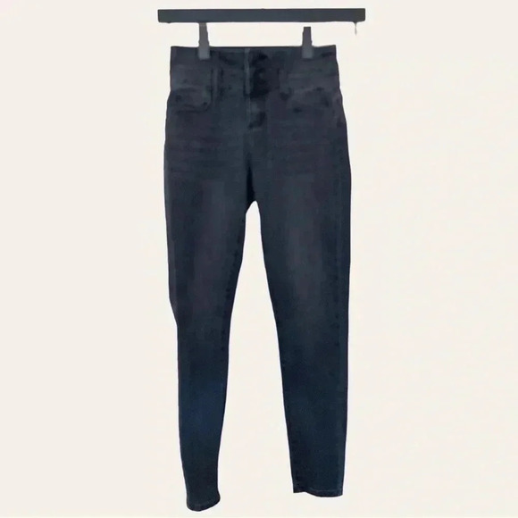 Interesting waist band and closure on these jeans. There is a short zipper topped with three buttons, then an additional band of fabric.