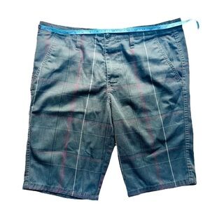 Bluenotes shorts classic flat front grey plaid cargo knee length size 38