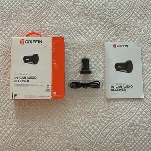 Upgrade your car's audio system with the Bluetooth In-Car Audio Receiver. This sleek black device ensures high-quality sound streaming and easy connectivity with various devices.