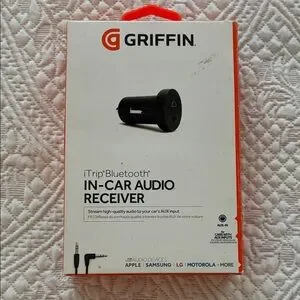 Upgrade your car's audio system with the Bluetooth In-Car Audio Receiver. This sleek black device ensures high-quality sound streaming and easy connectivity with various devices.