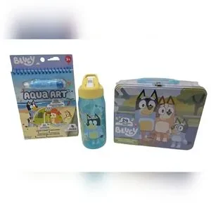 Delight your child with this Bluey activity bundle. This set includes a fun Aqua Art pad, a vibrant water bottle, and a Bley puzzle. Perfect for creative play and hydration on the go. All are brand new and never opened. Comes from a pet and smoke free environment. Thanks for stopping by!