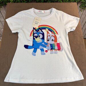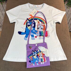 Bluey NWT White Purple Girls Skirt Outfit with Purse Size 140/8-10 (SKU: 160G)