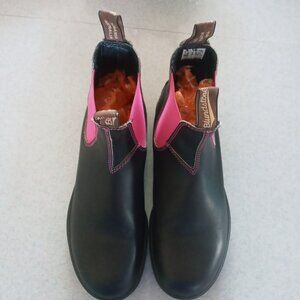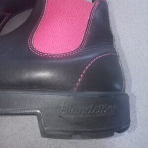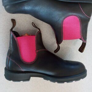 The Blundstone #2208 combines premium water-resistant black leather uppers with a fuschia pop on the iconic elastic gusset.