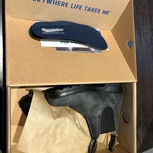 New in box. Never worn. Comes complete with extra insoles. I broke my legs in August and the size just won’t work for me. Slip-on Chelsea ankle boots with elastic side panels. Pull tabs at front and back for easy wear. Durable, low-profile sole for daily use.