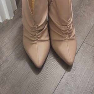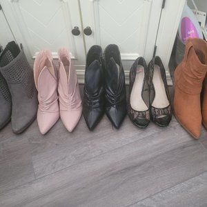Pink/blush size 9 bootie has a zipper on the side if them and they fit a wide foot. Brand new ,never worn or seen pavement.