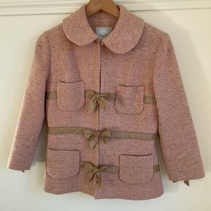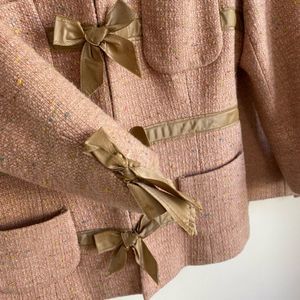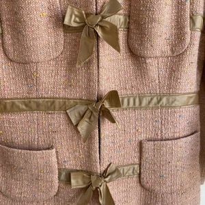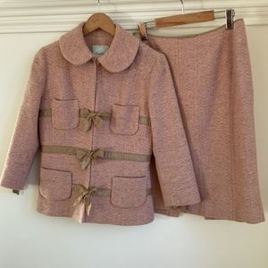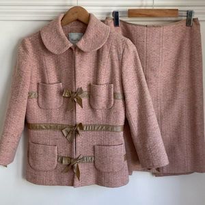 Blush pink tweed Tracy Reese Skirt Set With silk satin bows.