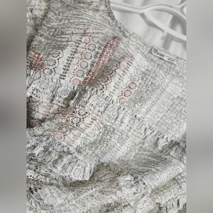 Bnwot,.Zara Sheer Textured Gray Long Sleeve Crop Top.