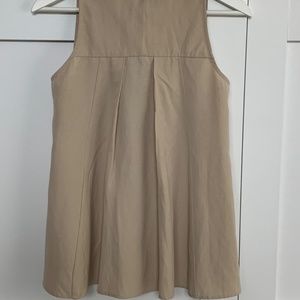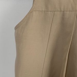 Beige and black ladylike sleeveless blouse. Gorgeous 100% linen. Never worn. The details and tailoring of this piece are phenomenal.