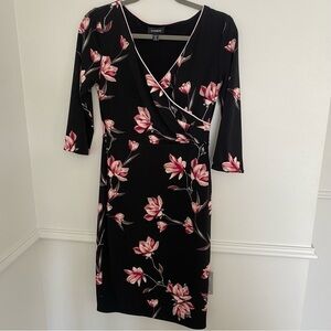 Bnwt le chateau pink black floral vNeck knee length dress