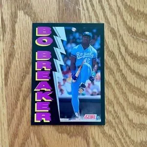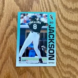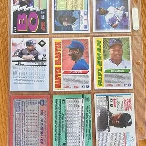 Set of Bo Jackson baseball cards featuring various action shots. Vibrant colors and dynamic designs.