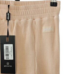 Bo+Tee Womens Ribbed Wide Leg Pull On Pants, Thick, Lined, Cream Pink,Size Small
