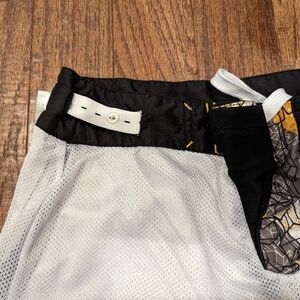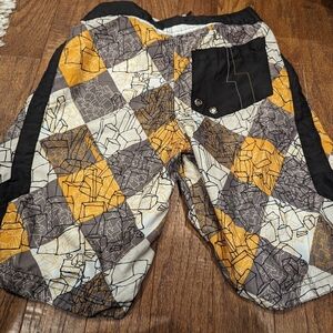 Board shorts, black and yellow Size Large Size 12/14 youth. Front Tie waist with adjustable elastic. Fully lined. Washed never worn. High quality
