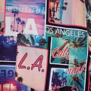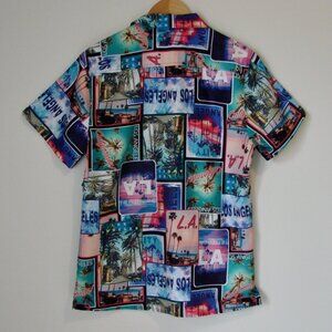 Boardsports Graphic Shirt Los Angeles California Hawaiian Palm Trees ~ Size Large ~ 100% Polyester ~ BRAND NEW WITH TAGS NWT - armpit to armpit measures approx 21.5" - length = 30" - unique graphic short sleeve button up shirt features palm trees, Los Angeles, California, L.A. graphics - bright colours of pink, purple, red, orange, yellow, green and blue - perfect for summer!! - Excellent BRAND NEW condition with a small black tag string under left arm ***New to Poshmark? Sign up using my code sandysgreatgarb to receive a $15 credit to shop on Poshmark.ca***