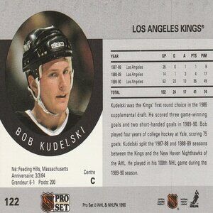 Bob Kudelski (LA Kings) Vintage 1990 Pro Set NHL Hockey Card - Card Number 122