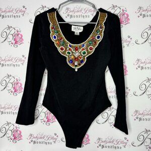 Bob Mackie blouses body suit embroidered jewels diamonds neckline stretchy