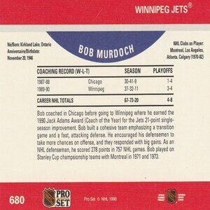 Bob Murdoch - Winnipeg Jets Coach - 1990 Pro Set Hockey Card