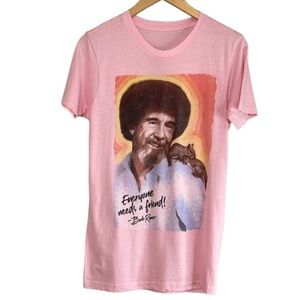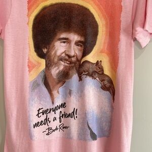 Bob Ross Everyone Needs A Friend Graphic Pink T-Shirt Short Sleeve Squirrel S