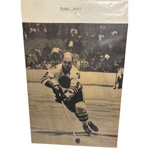 This vintage Bobby Hull hockey print showcases the legendary player in action. Ideal for collectors or sports enthusiasts seeking a unique piece.