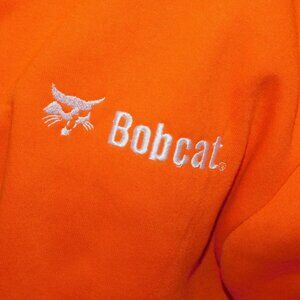This Mens 2XL Bobcat Construction Equipment / Mowers Orange Hoodie is in Excellent clean bright soft condition - worn once. Hoodie is 100% Polyester - Machine washable. Features drawstring Hood, bobcat with logo embroidered on chest and Bobcat Patch on Kangaroo Pocket.