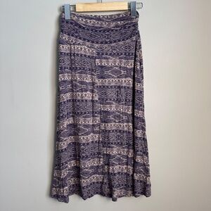 Bobeau Women's Boho Small Pull-On A-Line Midi Skirt Purple Aztec Tribal Festival