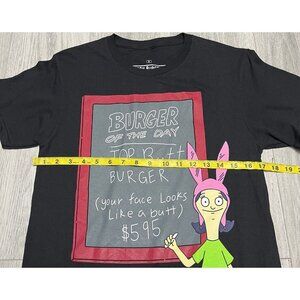 This pre-owned t-shirt is in excellent condition and is size small. It is machine washable, making it easy to care for. Ideal for fans of the show, this Bob's Burgers t-shirt is a great addition to any wardrobe.