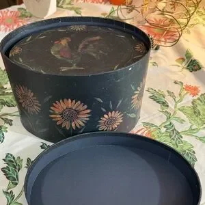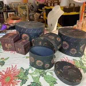Set of 4 oval rooster nesting boxes and 2 square flower motif.