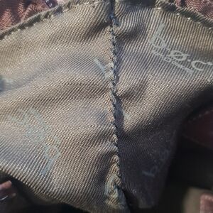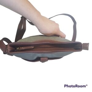 BOC tricolour faux leather zippered crossbody bag. Clean. All zippers work well. Twist lock front pocket. Zipper pocket on back. Adjustable strap. Inside has 3 pockets, 1 zippered and 1 snap tab closure. Approximate measurements: 10" high, 10.5" across the top, bottom 3.5"×8.5". Last few pictures show minimal wear. Very last photo shows 2" of stitching to repair lining. Smoke free home.