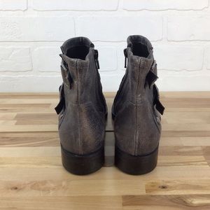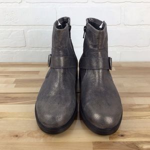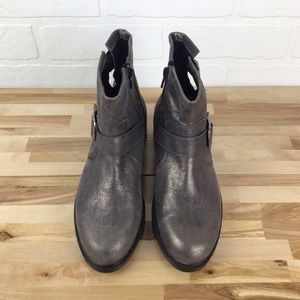 Bocage grey silver shiny ankle chelsea boot moto harness leather bikercore vegan