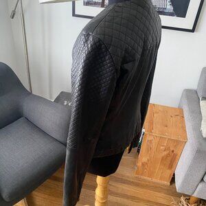 - genuine black leather, quilted biker style jacket