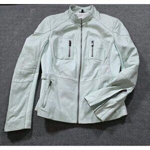 Bod & Christensen Jacket Women M Light Green Genuine Leather Moto Lined