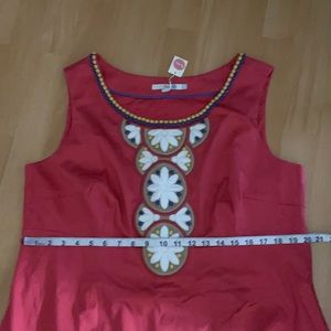 Colour close to actual on last three pictures, ptp21” hips 24.5” waist 21.5” L 40”All measurements are approximately , some stretching not much, colour Not red