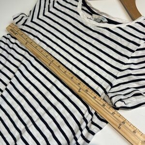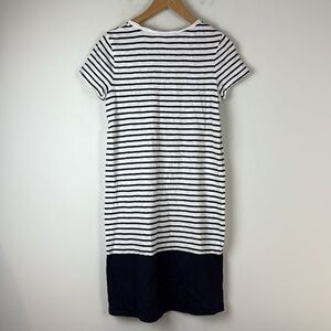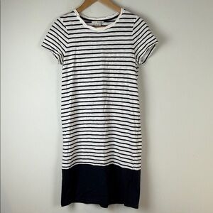 Stylish mini dress with navy and white stripes. Perfect for casual outings.