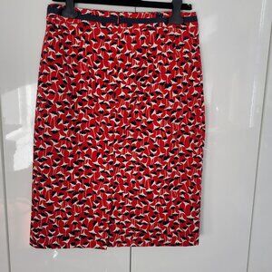 Boden Red Floral Print Cotton Pencil Skirt Size US 12