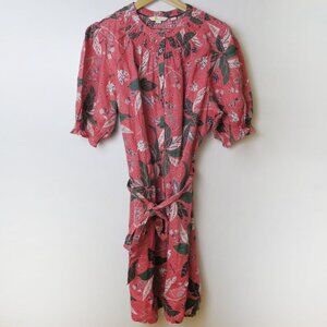Our semi-fitted linen shirt dress makes very good use of comfortable, stretchy stitching. Smocked neckline? Of course. Smocked frilly cuffs? Absolutely. With its neat grandad collar combined with elegant puffed shoulders and a flattering curved hemline, this is a distinctive take on classic tailoring. We've added a self-tie belt too, so you can enjoy a little extra definition at the waist.