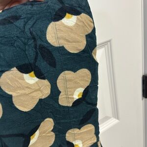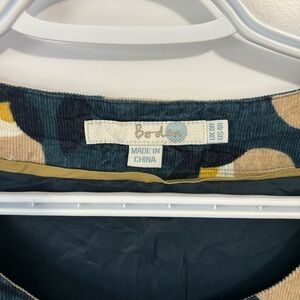 Boden Tan and Blue Floral Corduroy Dress with Cuffed 3/4 Sleeves