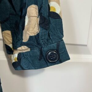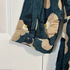 SUPER CUTE blue and tan floral, corduroy dress from Boden. Defined waist and 3/4 length cuffed and buttoned sleeves.