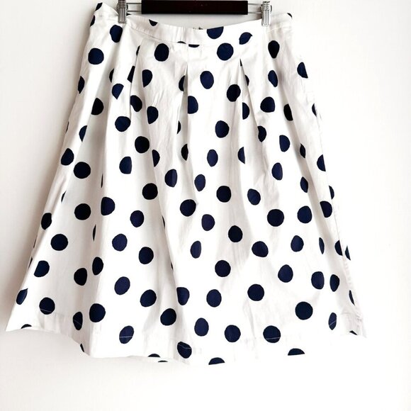 Boden White Navy Blue Polka Dot Full Midi Skirt 16R