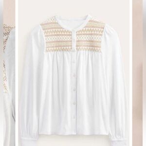 Boden White cotton blend Button Up Blouse