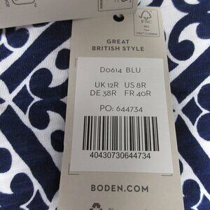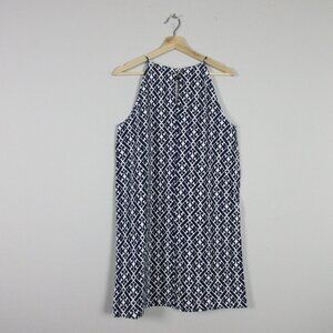 Boden Women Blue Geometric Sleeveless Racer Neck Mini Dress 8 Jersey Summer 194