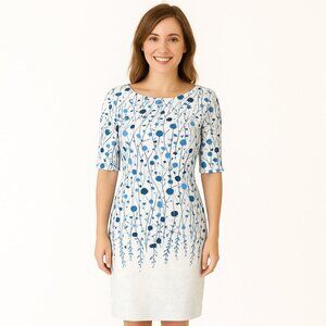 Boden Women White Floral 3/4 Sleeve Fit and Flare Midi Dress Size 10 Romantic