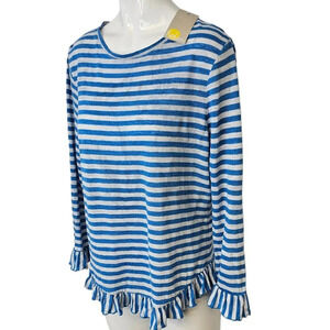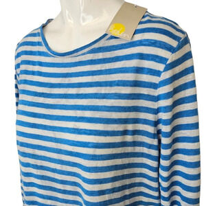 Boden Womens Dorothy 100% Linen Stripe Top Size 6 Blue Frill Bottom NWT Nautical