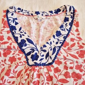 Boden women's size US 4R sleeveless V neck dress, blue trim around V, VGUC