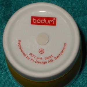 Bodum Pavina coffee mug. White porcelain with Yellow Silicone Grips