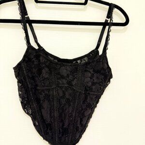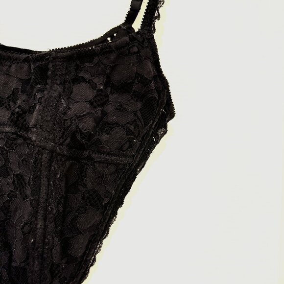 Enhance your wardrobe with this elegant black lace bodysuit.